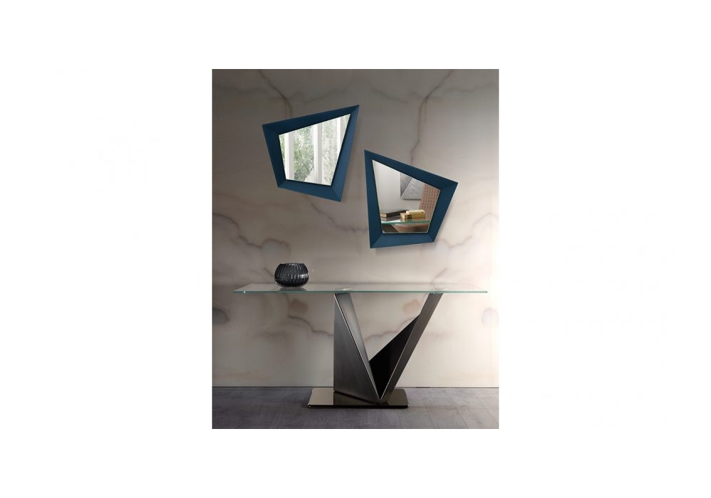 Quartz firmato da Reflex Angelo è uno specchio in vetro extrachiaro con cornice in vetro extrachiaro a specchio, in vetro verniciato o acidato verniciato oppure in finitura ottone satinato. Possibilità di illuminazione a LED tra specchio e cornice.