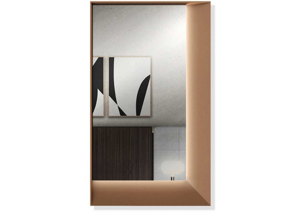 C'est Moi firmato da Mauro Lipparini per Conte Casa è uno specchio realizzato con rivestimento in cuoio e dettaglio in legno. Disponibile in diverse finiture.