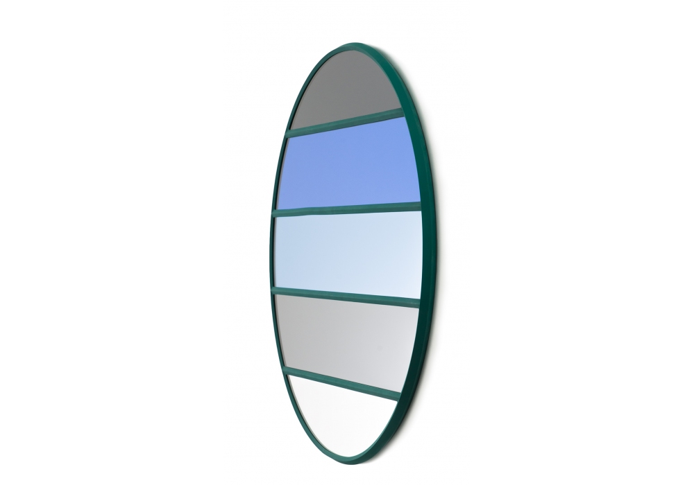 Vitrail firmato da Inga Sempé per Magis è uno specchio rotondo con cornice in gomma. Specchio con vetro retropellicolato e fasce colorate.