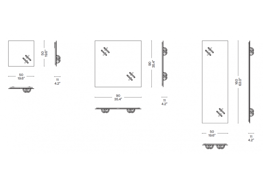 | Dimensioni | 50 x 50 cm; 90 x 90 cm; 160 x 50 cm. |
