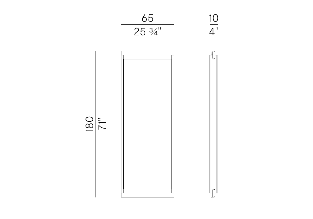 | Dimensioni | 65 x 10 x H 180 cm; 65 x 10 x H 93 cm; 65 x 10 x H 75 cm. |