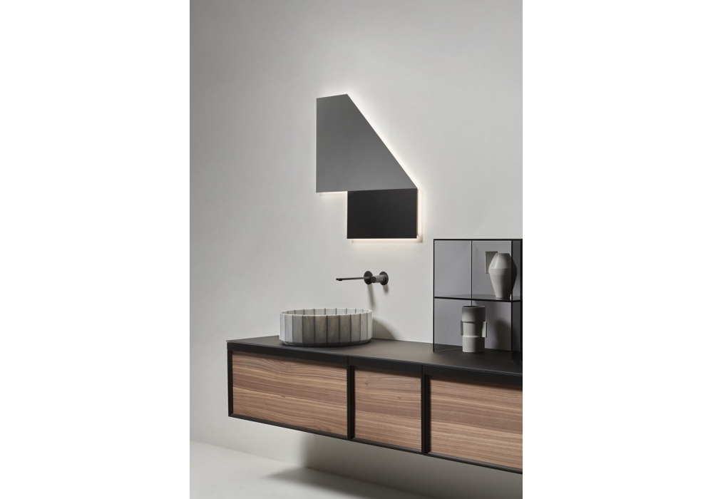 Specchidicarta firmato da Gumdesign per Antonio Lupi è uno specchio a filo lucido, illuminazione a LED luce bianca completo di telaio nero. Disponibile anche con inserto retrolaccato nero.