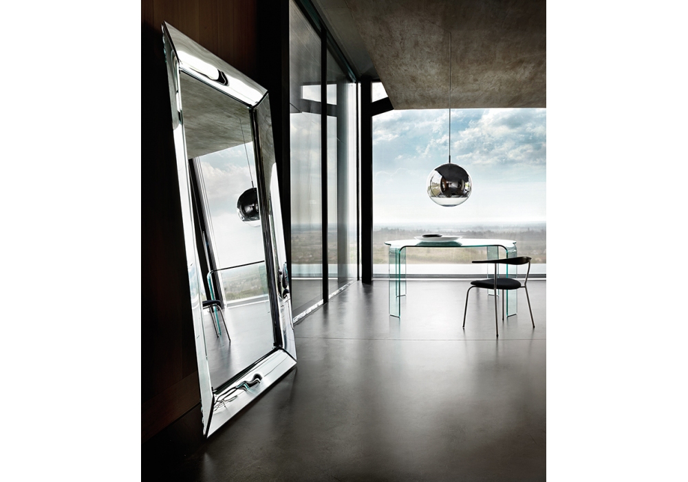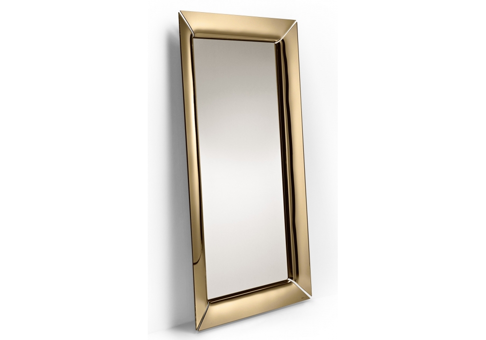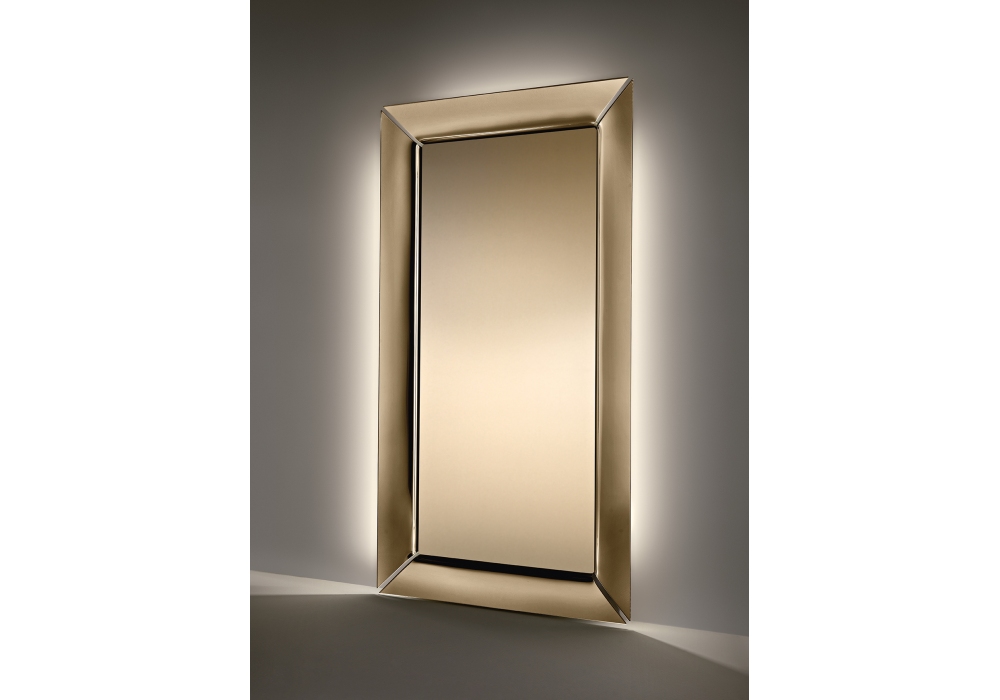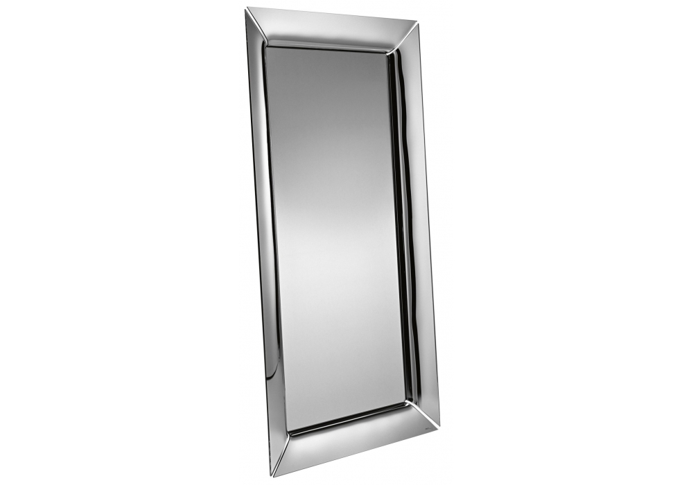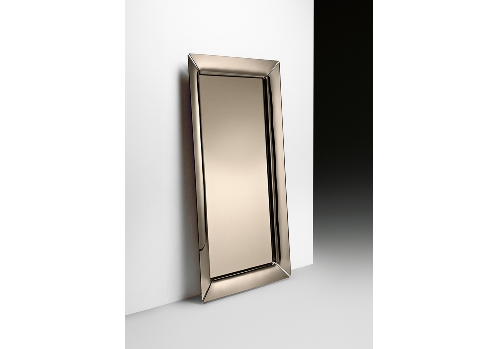 Caadre firmato da Philippe Starck per Fiam è uno specchio autoportante con cornice composta da quattro elementi curvi con finitura argentata sul retro. Disponibile in vetro semiriflettente color Titanio o in vetro bronzo retroargentato. Disponibile con kit di illuminazione a LED con dimmer e regolazione della temperatura.