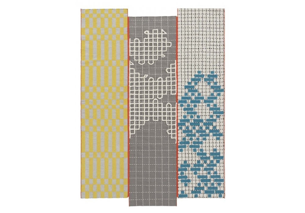 Bandas 3 è un tappeto firmato da Patricia Urquiola per Gan. Prodotto attraverso una miscela di tecniche: telaio a mano, ricamo, uncinetto. Fibra 100% lana vergine, velcro 100% poliestere.