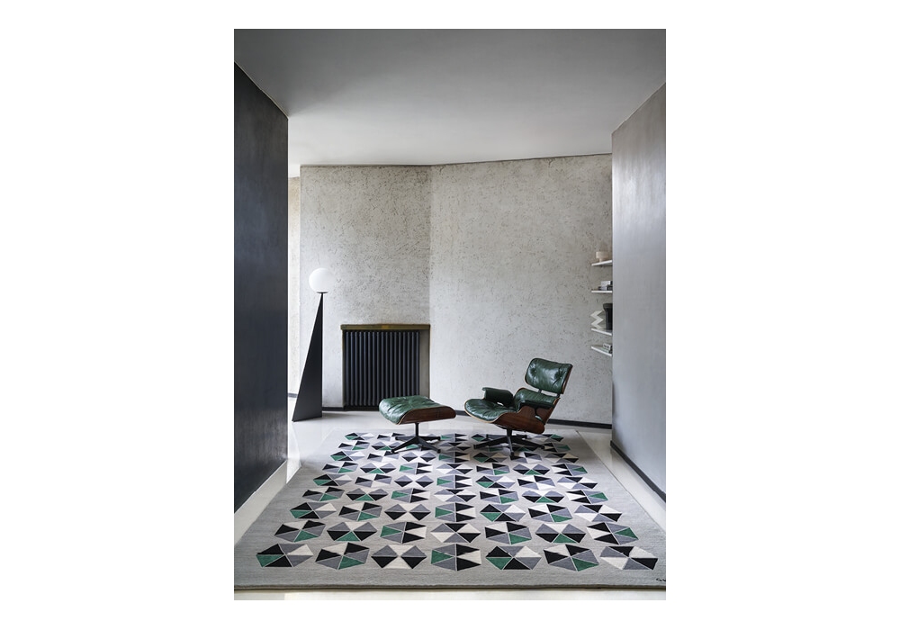 Esagoni disegnato da Gio Ponti per Amini è un tappeto per interno. Realizzato in lana d’Altipiano Tibetano e seta naturale, annodato a mano. Questo tappeto è disponibile in diverse finiture e dimensioni.