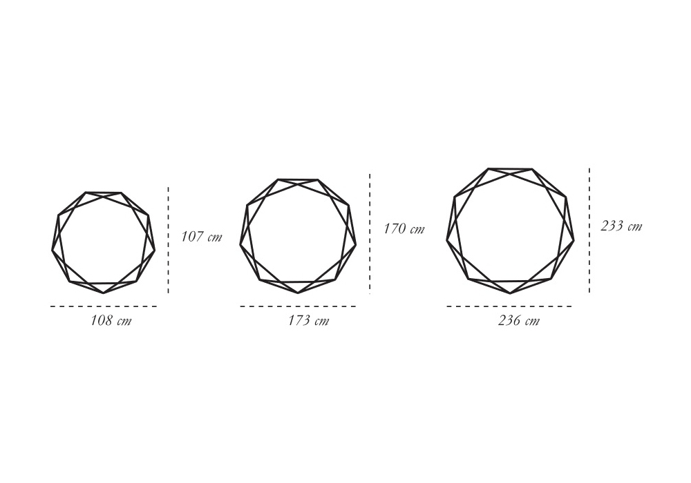| Dimensioni | 236 x 233 cm; 173 x 170 cm; 108 x 107 cm. |