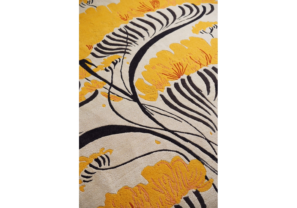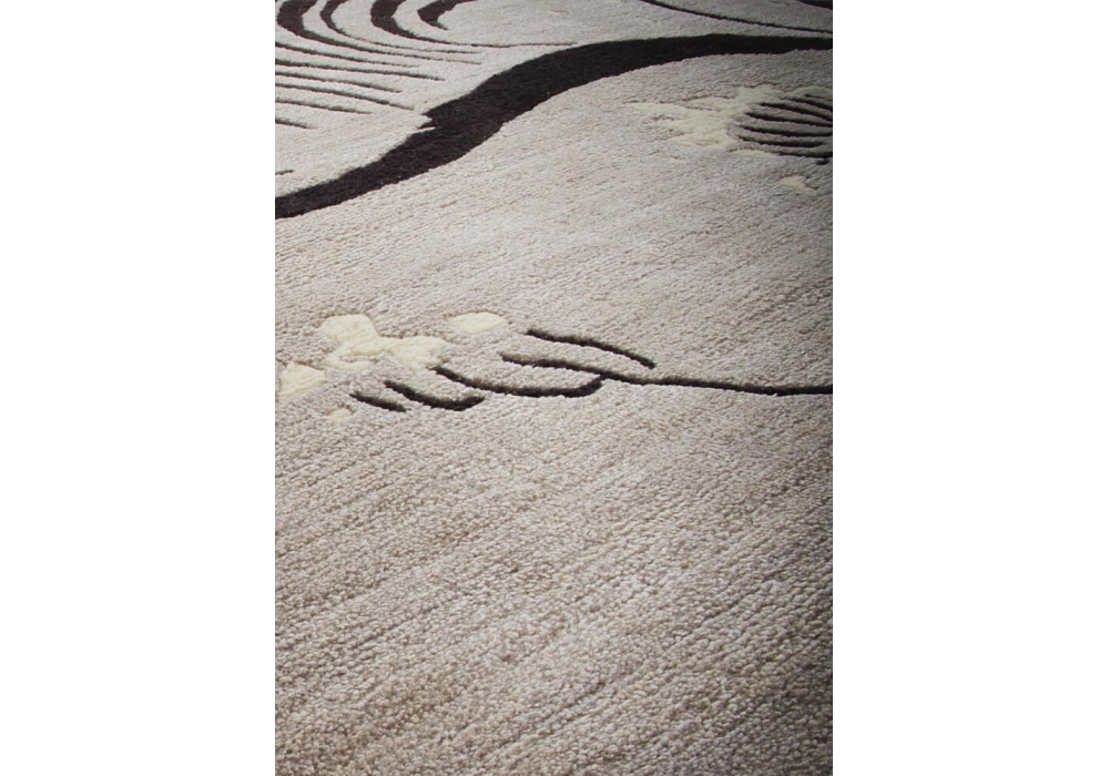 Valparaise firmato da René Gruau per Amini è un tappeto annodato a mano in seta e lana Neozelandese. Disponibile in 2 finiture.