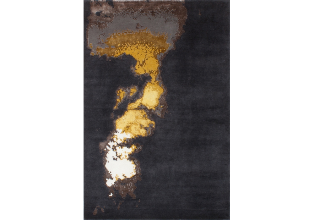 Dietro a. firmato da Serge Lesage è un tappeto annodato a mano in lana della Nuova Zelanda e viscosa disponibile in diverse misure.