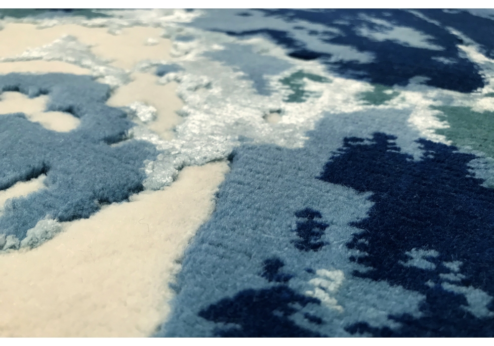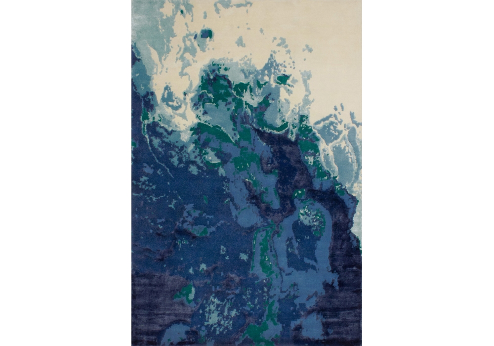 Océan firmato da Serge Lesage è un tappeto annodato a mano in viscosa e lana della Nuova Zelanda. È disponibile in diverse misure.