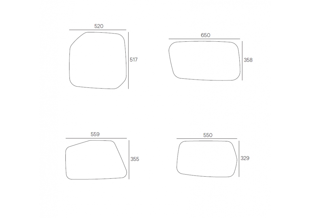 | Dimensioni | 520 x 517 x H 5 cm; 650 x 358 x H 5 cm; 559 x 355 x H 5 cm; 550 x 329 x H 5 cm. |