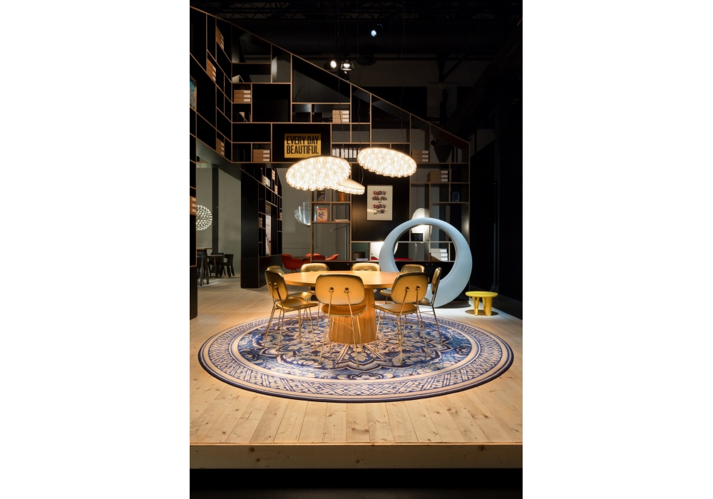 Delft Blue Plate firmato da Marcel Wanders per Moooi è un tappeto rotondo disponibile in tre diverse finiture e due dimensioni.