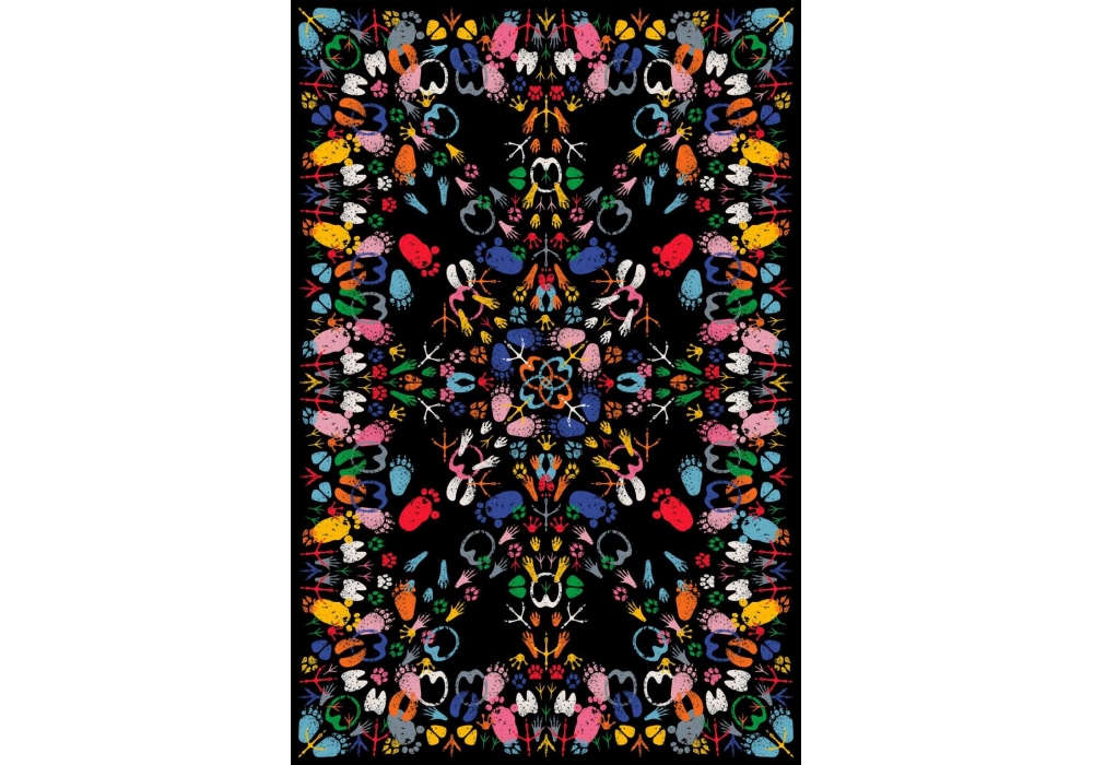 Let's Dance Animal Trances Dark firmato da Nynke Tynagel per Qeeboo è un tappeto di forma quadrangolare in poliestere antiscivolo e poliammide con verie tonalità di colore.