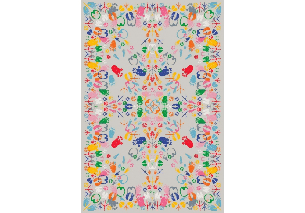 Let's Dance Animal Trances Light firmato da Nynke Tynagel per Qeeboo è un tappeto di forma quadrangolare in poliestere antiscivolo e poliammide con verie tonalità di colore.
