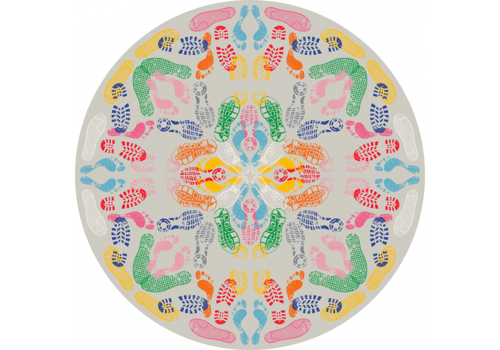 Let's Dance Human Trances Light firmato da Nynke Tynagel per Qeeboo è un tappeto di forma circolare in poliestere antiscivolo e poliammide con verie tonalità di colore.