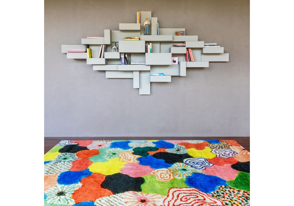 Patch Rectangular firmato da Alessandro Mendini per Qeeboo è un tappeto di forma quadrangolare in poliestere antiscivolo e poliammide con verie tonalità di colore.