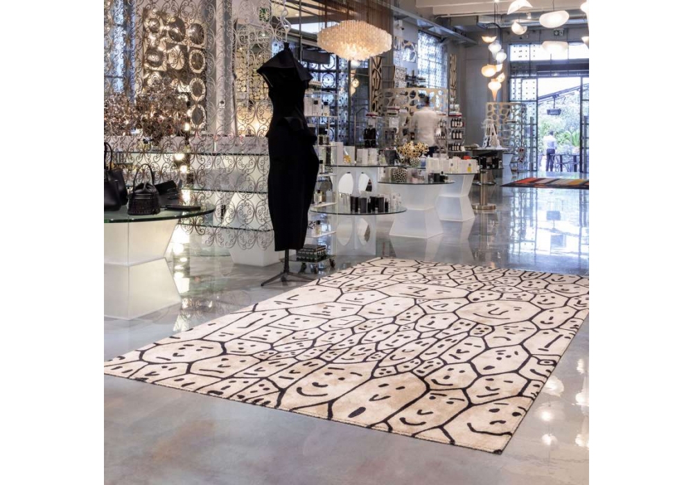 People 1 firmato da Andrea Branzi per Qeeboo è un tappeto di forma quadrangolare in poliestere antiscivolo e poliammide con verie tonalità di colore.