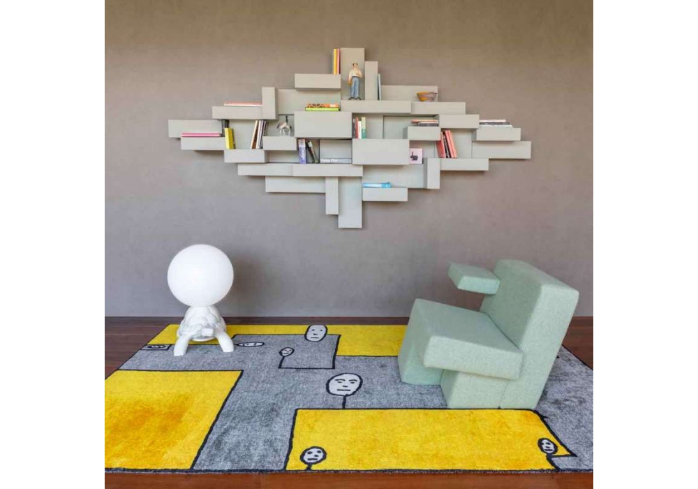 Dog Yellow Rectangular firmato da Andrea Branzi per Qeeboo è un tappeto di forma quadrangolare in poliestere antiscivolo e poliammide con verie tonalità di colore.