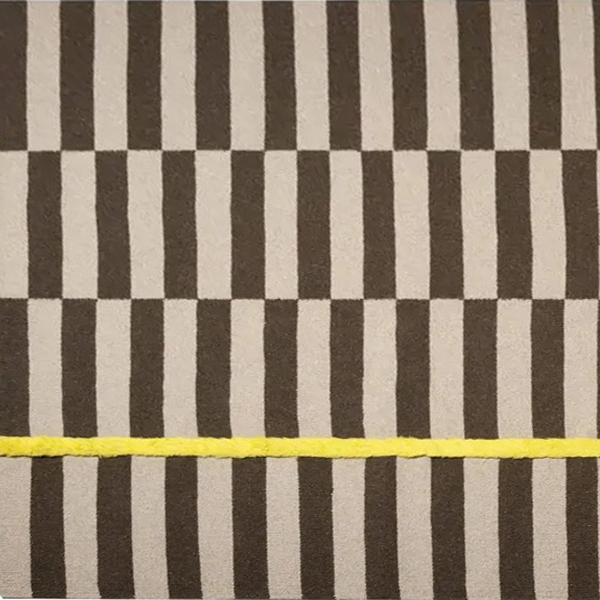 Anni firmato da Studiopepe per Tacchini è un tappeto disponibile in diverse dimensioni, con varie composizioni di decoro. E' disponibile con finitura di richiamo Bauhaus, a righe o a quadretti, chiare o scure. Il tappeto è realizzato in lana naturale, annodata a mano in Nepal, con dettaglio colorato giallo o blu.