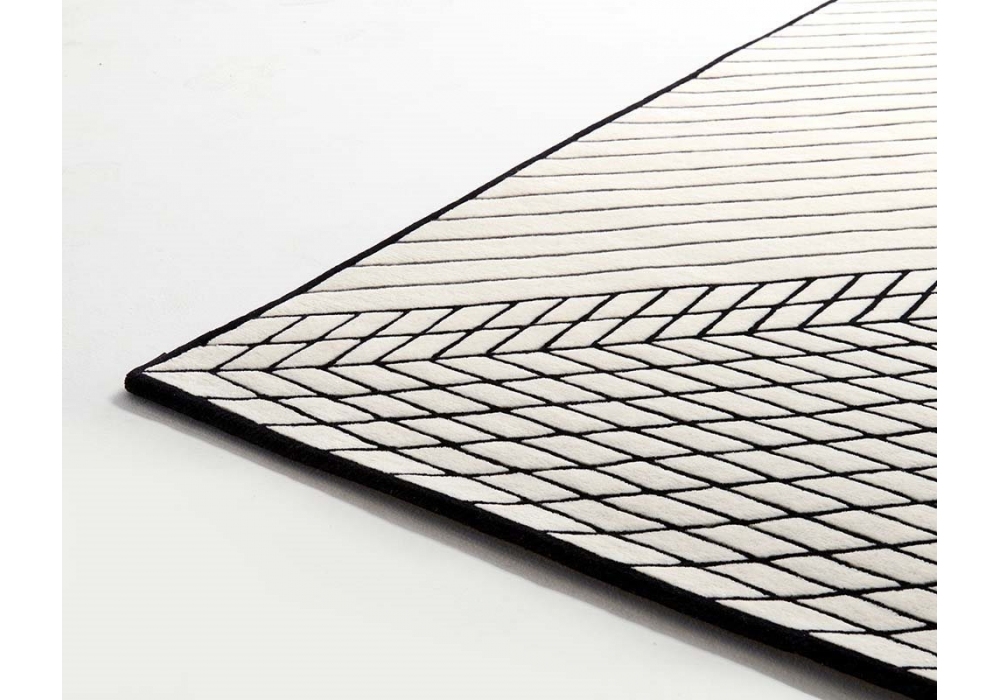 150 Quaderna firmato da Superstudio / Cristiano Toraldo di Francia per Zanotta è un tappeto tuftato a mano con vello uniforme su tutta la superficie, realizzato in 100% lana neozelandese. Disponibile in un unico colore: fondo bianco e linee grigie e nere in linea con il disegno originale.