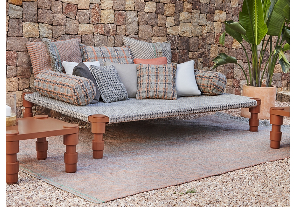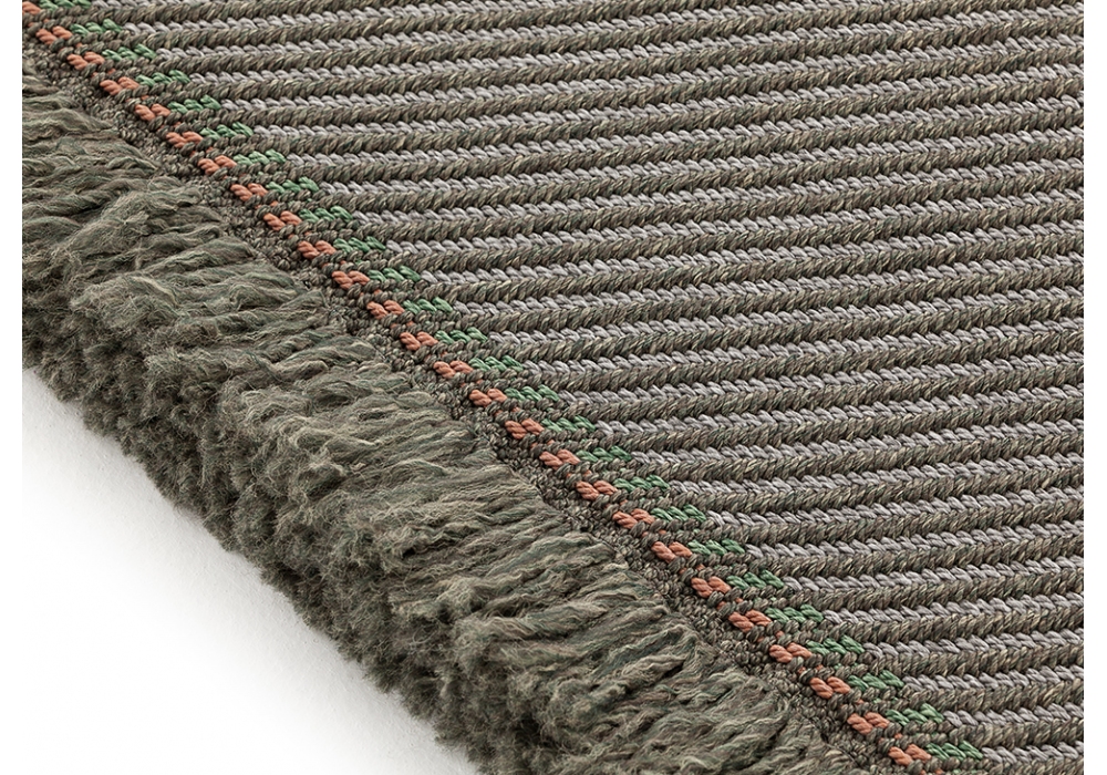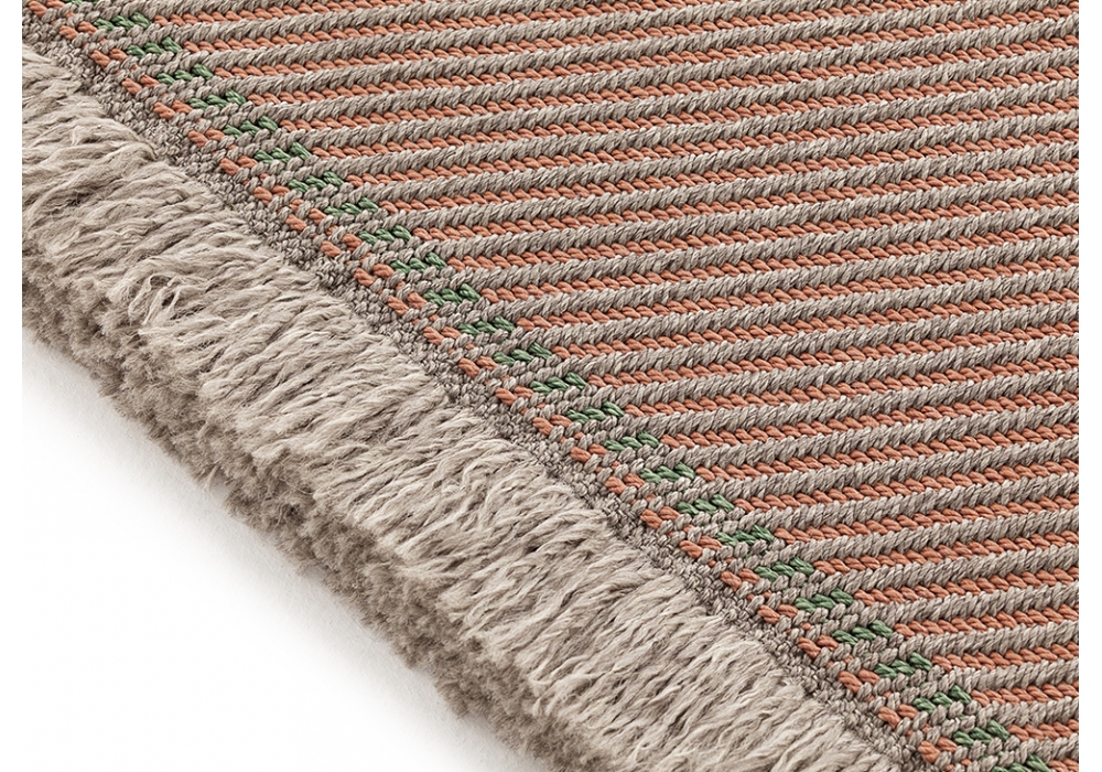 Garden Layers Diagonal firmato da Patricia Urquiola per Gan è un tappeto da esterno intelaiato a mano realizzato con PET riciclato al 100%. Disponibile in diverse finiture.