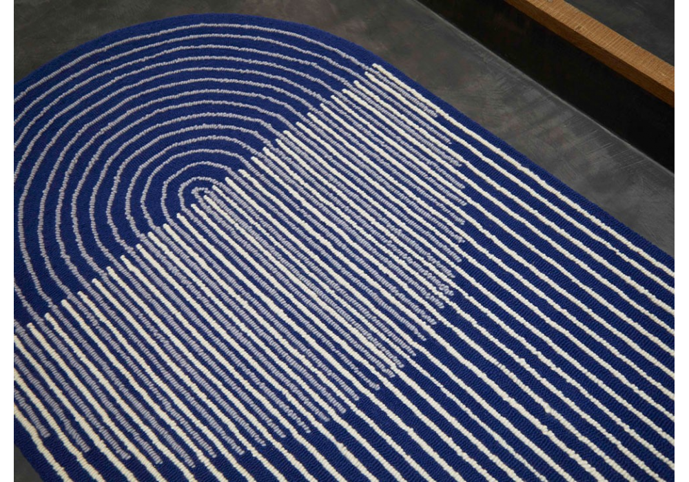 Ply Blue firmato da Mut Design per Gan è un tappeto taftato a mano realizzato al 100% in lana, retro in cotone.