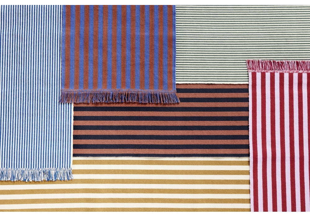 Stripes and Stripes prodotto e firmato da Hay è un tappeto realizzato in cotone con estremità sfrangiate, composto da strisce verticali in colori contrastanti. Disponibile in differenti finiture.