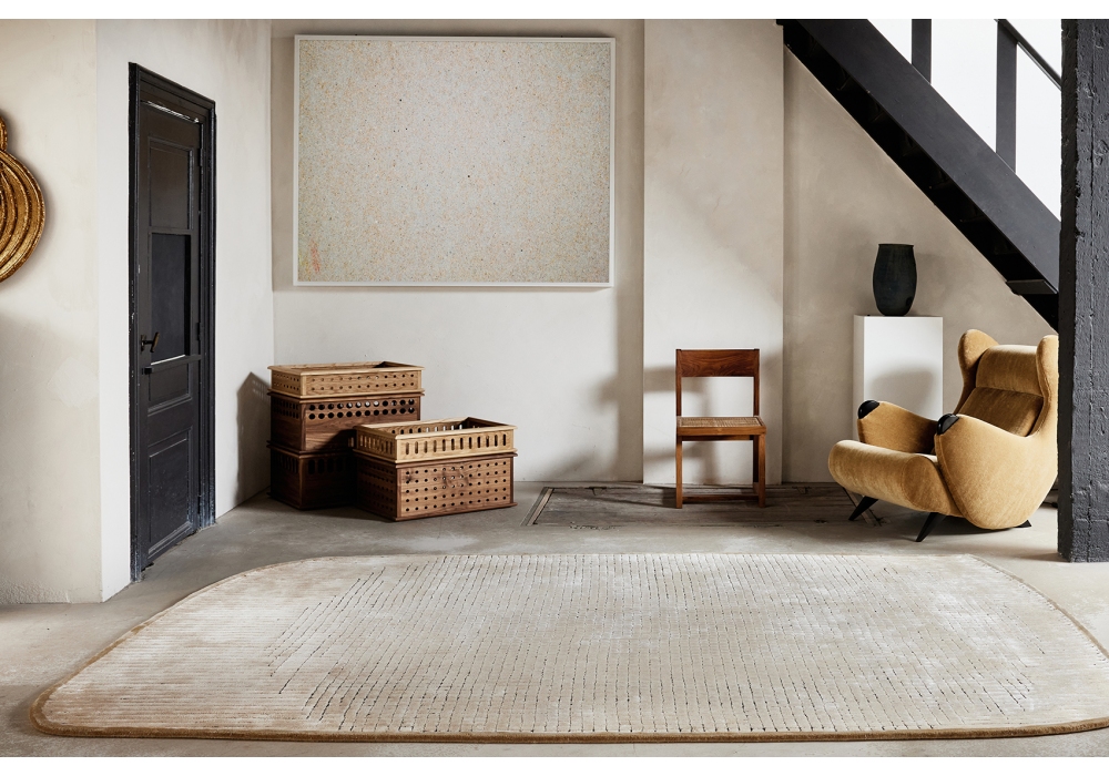 Geometry firmato da Serge Lesage è un tappeto annodato a mano realizzato in viscosa di bambù filata a mano. .
