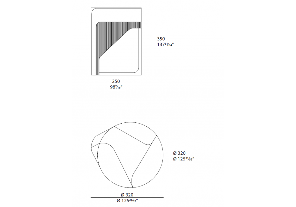 | Dimensioni | 250 x 350 cm; Ø 320 cm. |