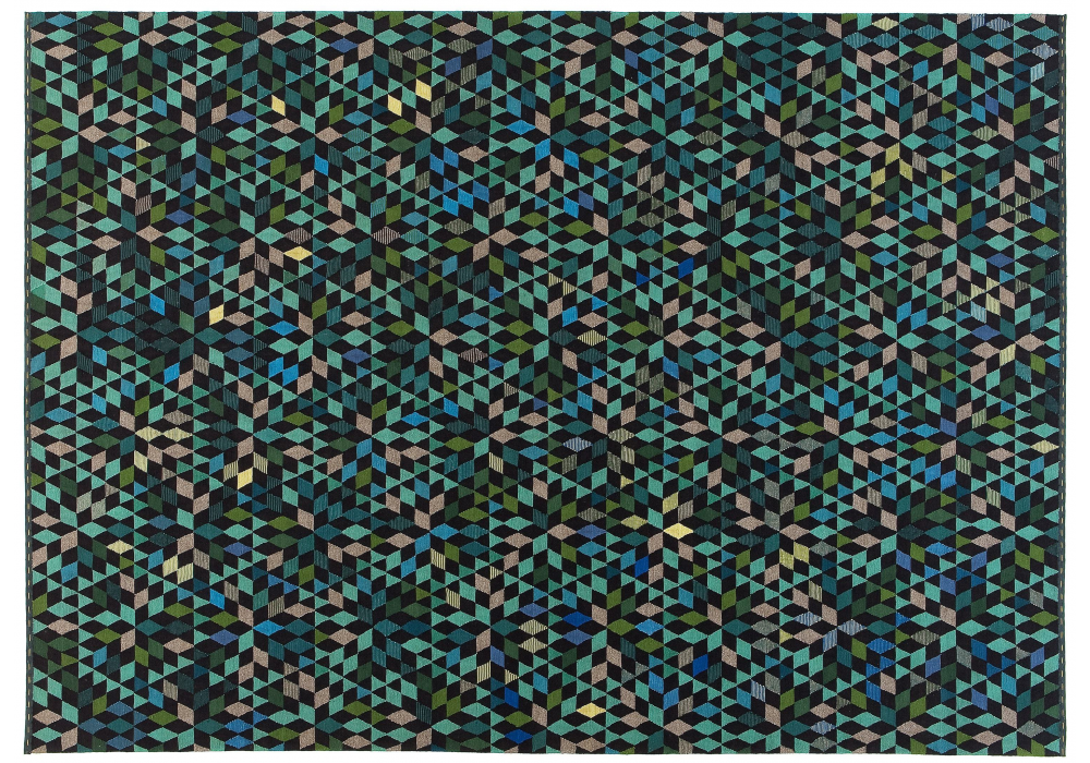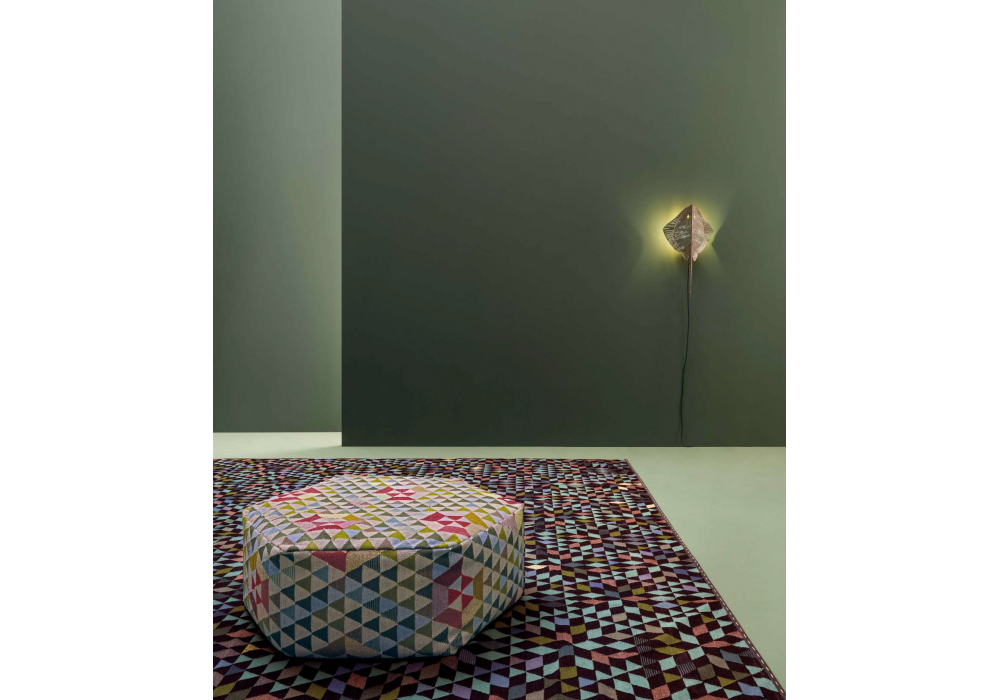 Triangles firmato da Bertjan Pot per Golran è un tappeto dalla tessitura piatta annodata a mano secondo la tecnica del KILIM. É realizzato al 70% in lana, 15% seta e 15% fibre di cactus.
