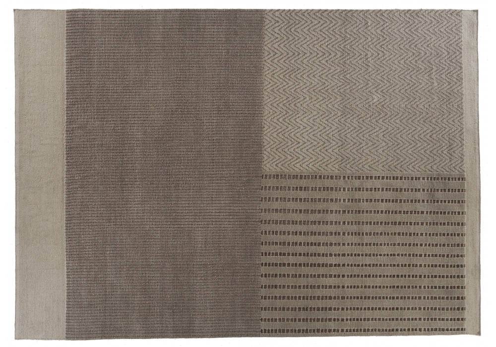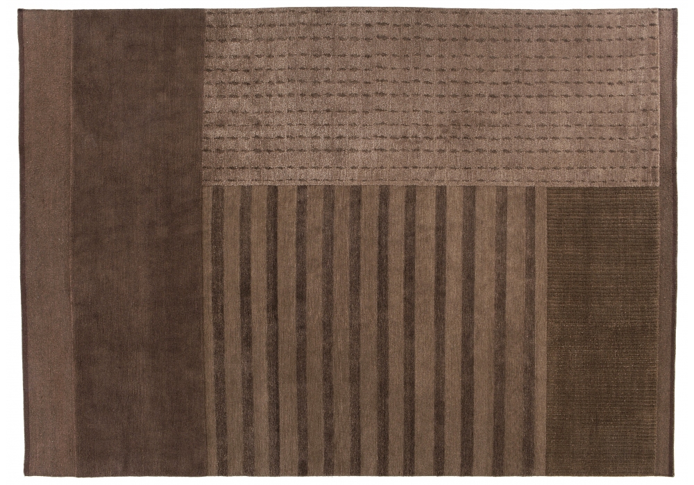 Hunua firmato da Piero Lissoni per Golran è un tappeto annodato a mano composto al 46% lana, 29% seta, 19% canapa e 6% halo.