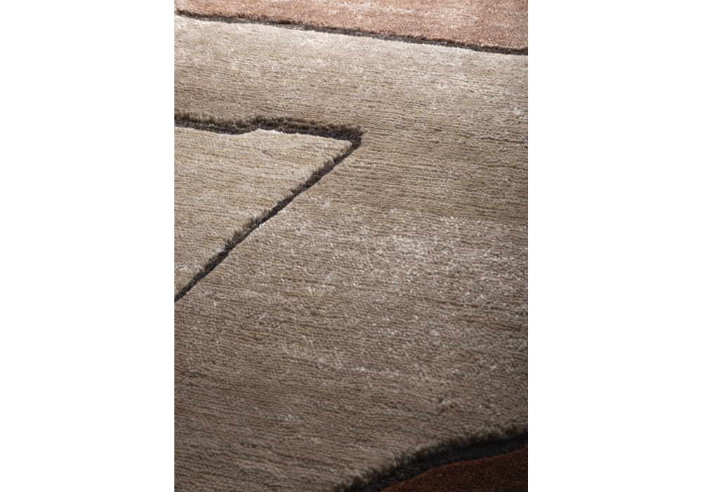 Ritagli firmato da Elisa Ossino per Amini è un tappeto annodato a mano con frange rivoltate sul retro e coperte da tessuto. Disponibile in diverse finiture.