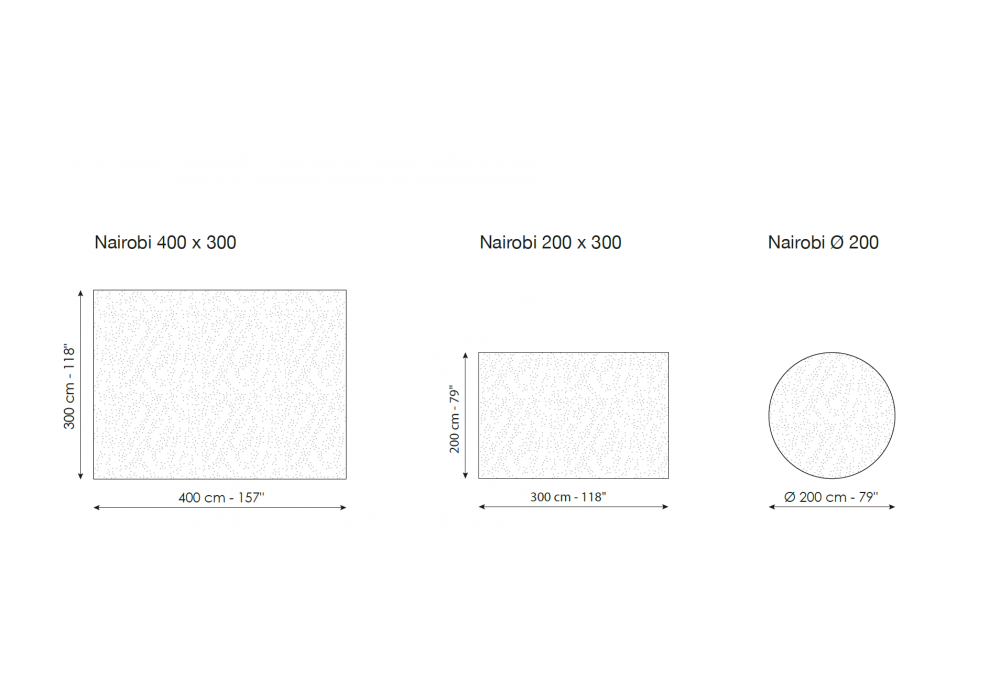 | Dimensioni | 400 x 300 cm; 300 x 200 cm; Ø 200 cm. |