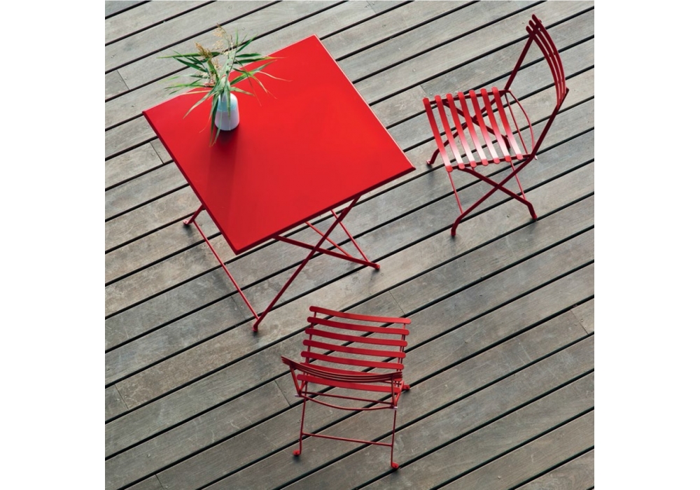 Flower firmato da Ethimo è un tavolo pieghevole per esterni con struttura e piano in metallo disponibile in differenti finiture e dimensioni.