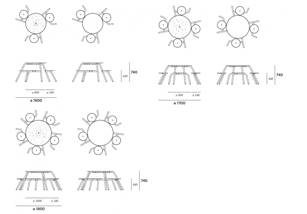 | Diametro | Ø 160 cm; Ø 170 cm; Ø 180 cm. |