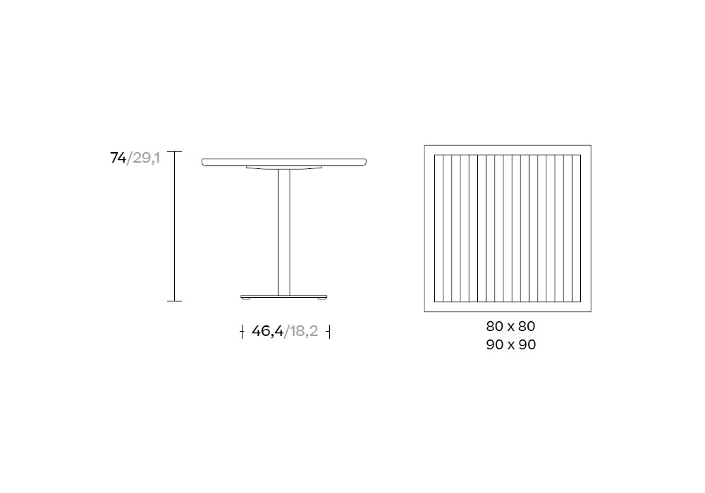 | Dimensioni | 80 x 80 x H 74 cm; 90 x 90 x H 74 cm. |