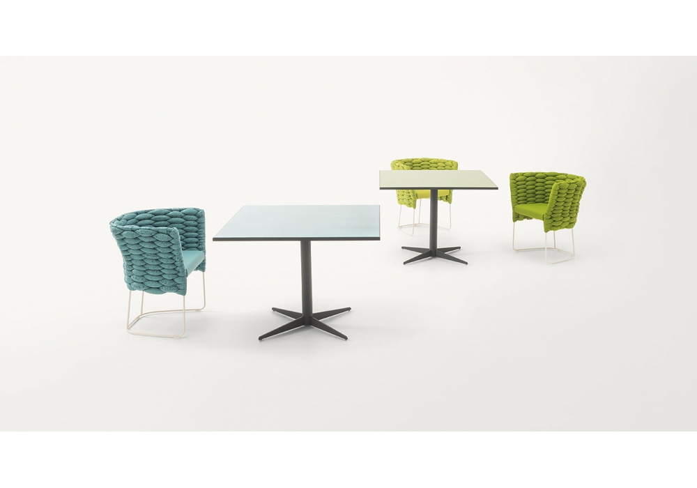 Café firmato da CRS Paola Lenti è un tavolo quadrato con struttura in acciaio inox verniciato e piano disponibile in differenti finiture. Disponibile anche in 2 altezze.