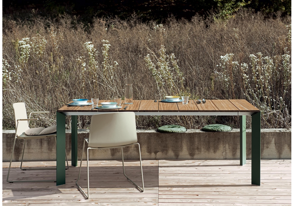 Nori Slatted firmato da Bartoli Design per Kristalia è un tavolo per esterni con gambe in alluminio disponibile in diverse finiture. Piano in Teak. Disponibile in varie dimensioni.