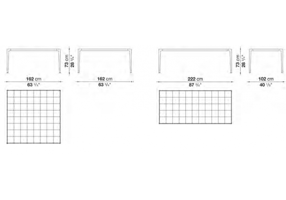 | Dimensioni | 222 x 102 x H 73 cm 162 x 162 x H 73 cm |