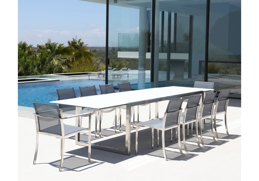 Ninix firmato da Kris Van Puyvelde per Royal Botania è un tavolo allungabile con struttura in acciaio inossidabile. Piano in ceramica o in teak.