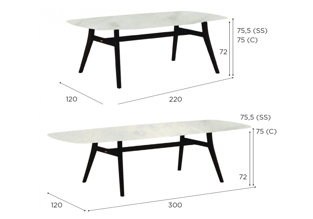 | Dimensioni | 220 x 120 x H 75,5 cm; 300 x 120 x H 75,5 cm. |