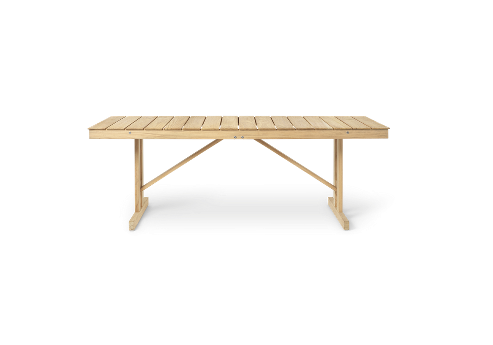 BM1771 firmato da Børge Mogensen per Carl Hansen & Søn è un tavolo da esterno con struttura e piano in legno massello in finitura teak.