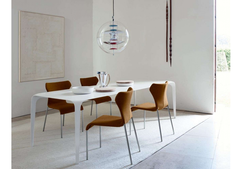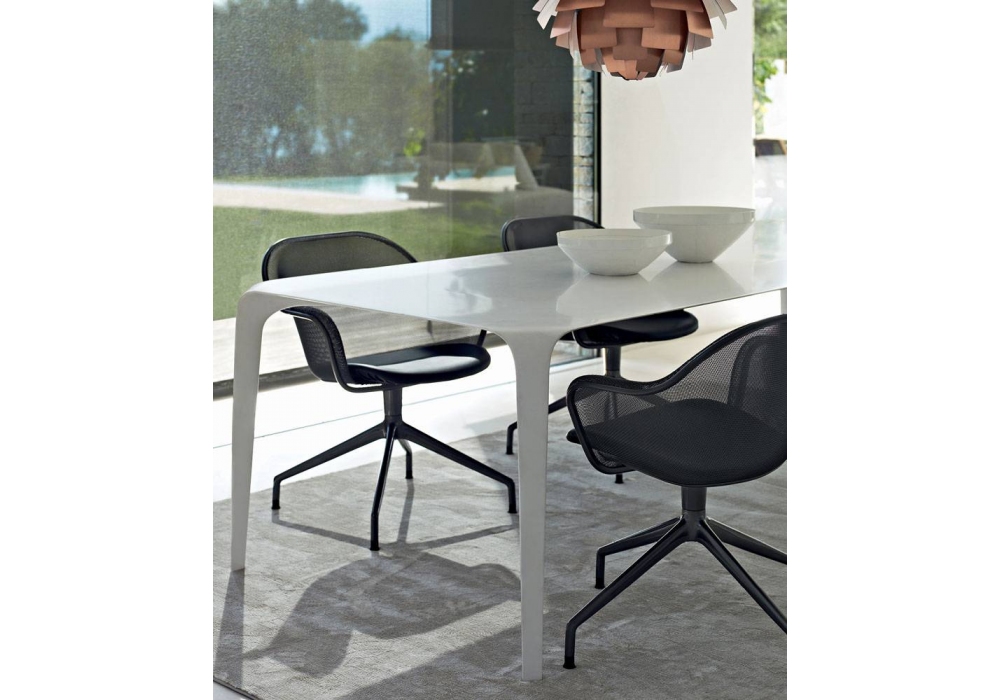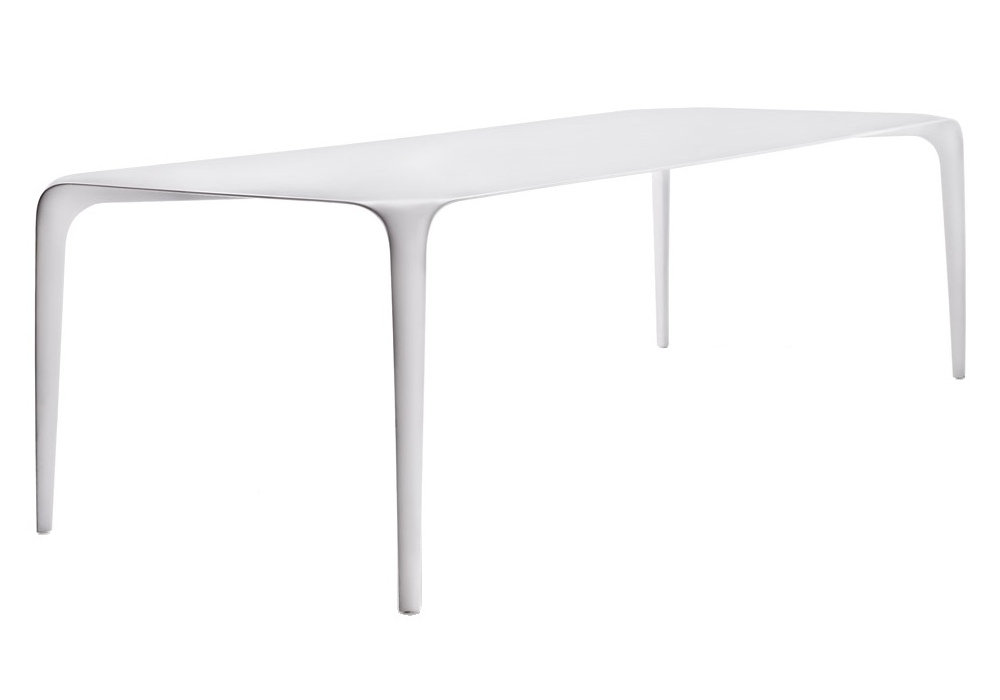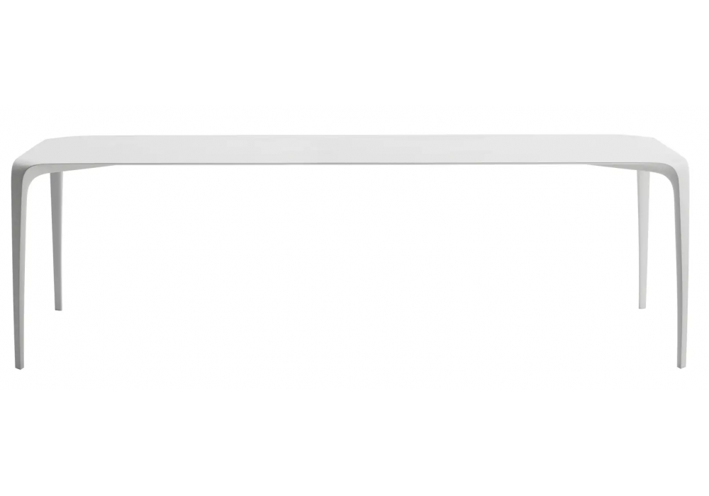 Link Outdoor firmato da Jakob Wagner per B&B Italia Outdoor è un tavolo realizzato con un nuovo tipo di finitura in Cristalplant® bianco.