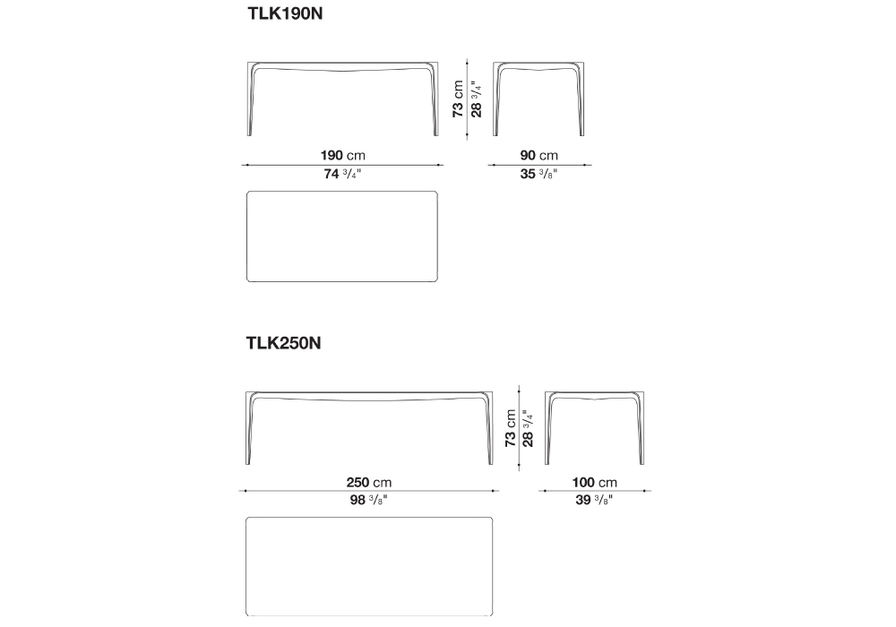 | Dimensioni | 190 x 90 x H 73 cm; 250 x 100 x H 73 cm. |