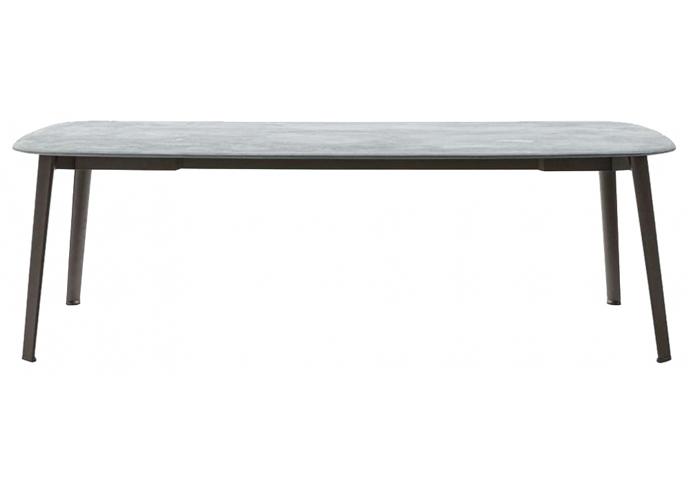 Ginepro firmato da Antonio Citterio per B&B Italia Outdoor è un tavolo in alluminio verniciato antracite e pietra serpentino. Disponibile in diverse dimensioni