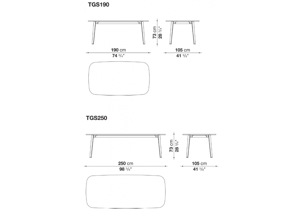 | Dimensioni | 190 x 105 x H 73 cm; 250 x 105 x H 73 cm. |