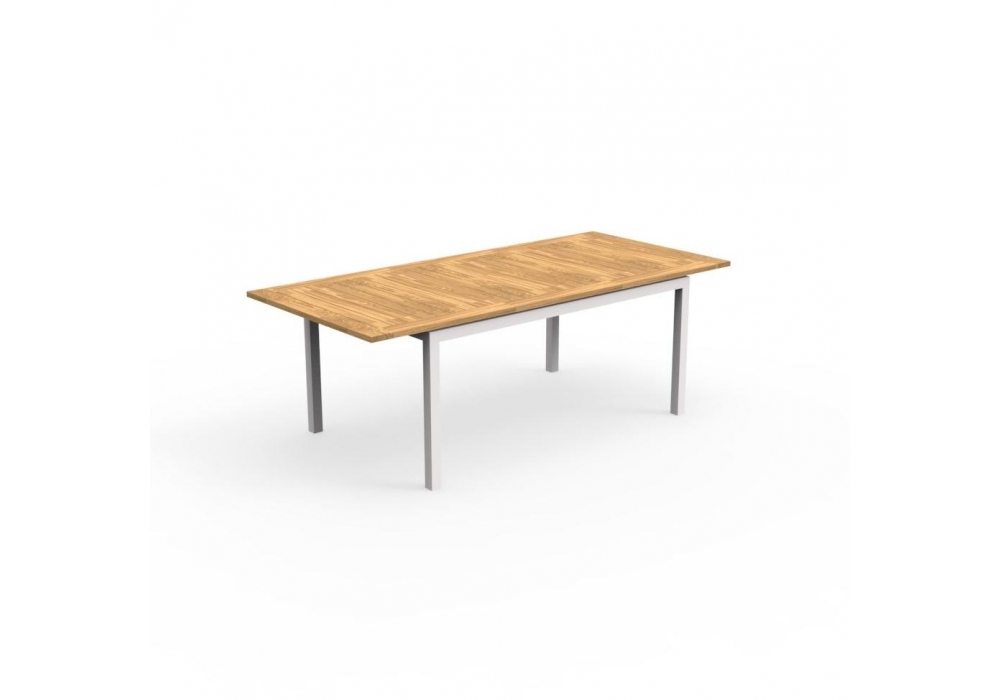 Timber disegnato per Talenti è un tavolo estendibile con gambe in alluminio in tre finiture e top in teak. Disponibile in due dimensioni.