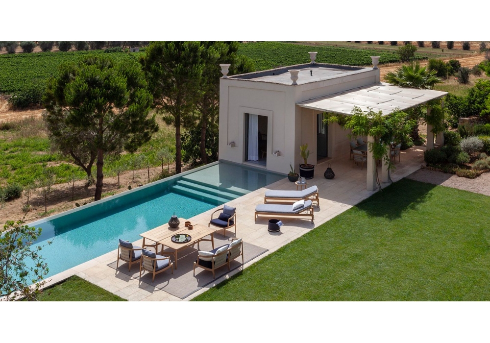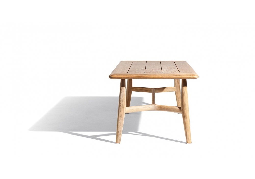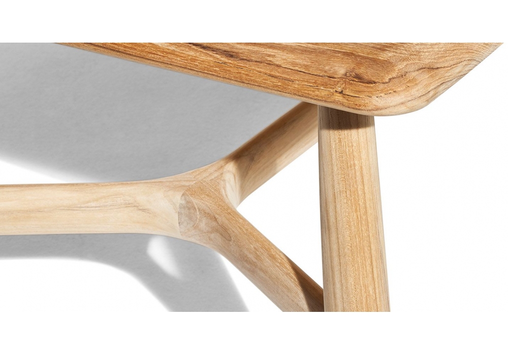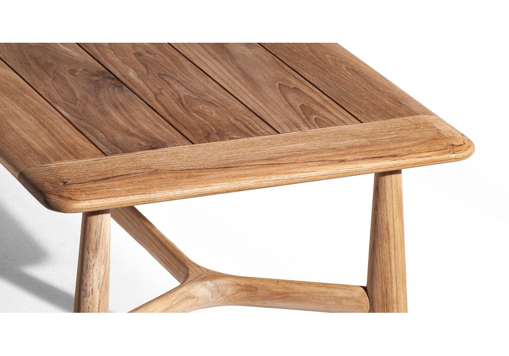 The Secret Garden firmato da Roberto Lazzeroni per Poltrona Frau è un tavolo interamente realizzato in legno massello di teak in finitura naturale, il tavolo è caratterizzato da dimensioni generose e da una struttura dalle sezioni snelle e organiche, frutto di un’ebanisteria molto perfezionata. Le gambe terminano con un puntale in acciaio inox lucido dal terminale in nylon nero. Il top è realizzato con doghe in legno massello di teak e bordo perimetrale con profilo ovale.