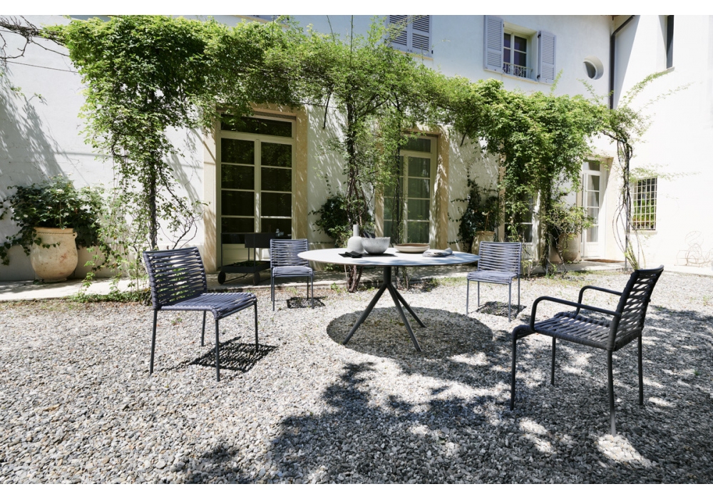 OTX firmato da Gabriele e Oscar Buratti per Potocco è un tavolo da esterno dalla forma circolare o quadrangolare con base in metallo verniciato in differenti finiture e piano in HPL. Disponibile in molteplici dimensioni.