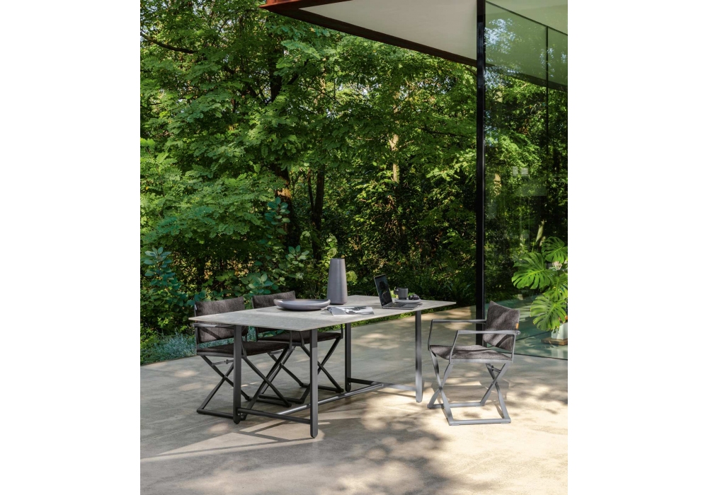 Riviera firmata da Marco Acerbis per Talenti è una collezione di tavoli da esterno realizzata con base in alluminio e piano in gres.