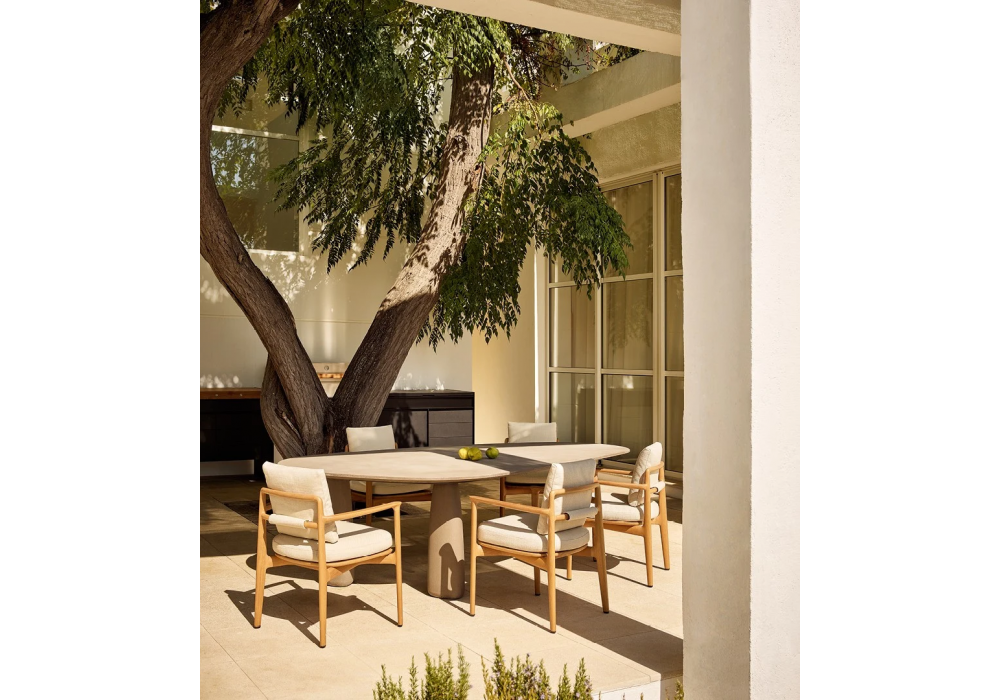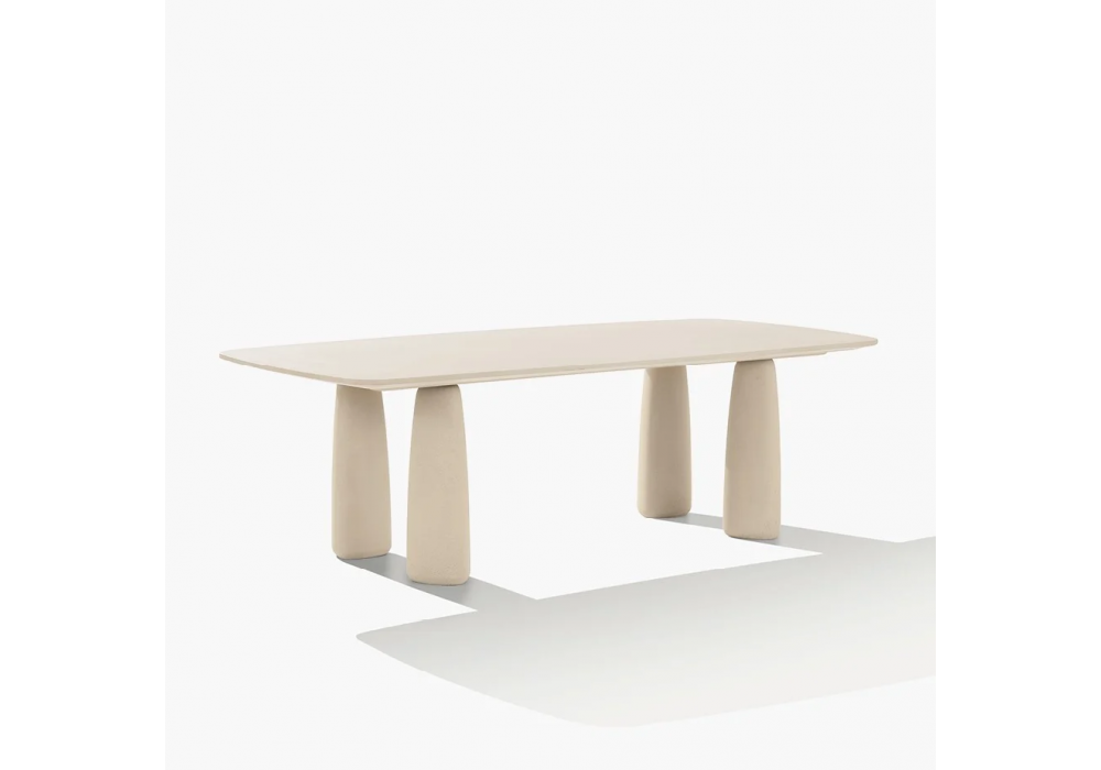 Monolith Outdoor firmato da Emmanuel Gallina per Poliform è un tavolo realizzato interamente in Cementoskin® e telaio ib acciaio inox verniciato.